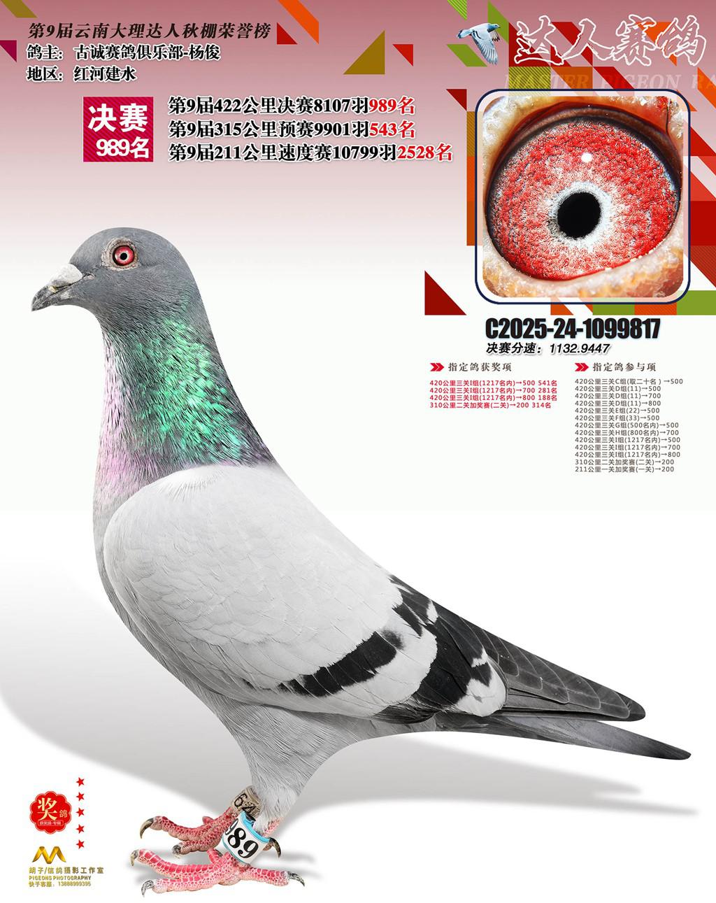 位置:云南大理巍山达人赛鸽中心2025获奖鸽展示\989名