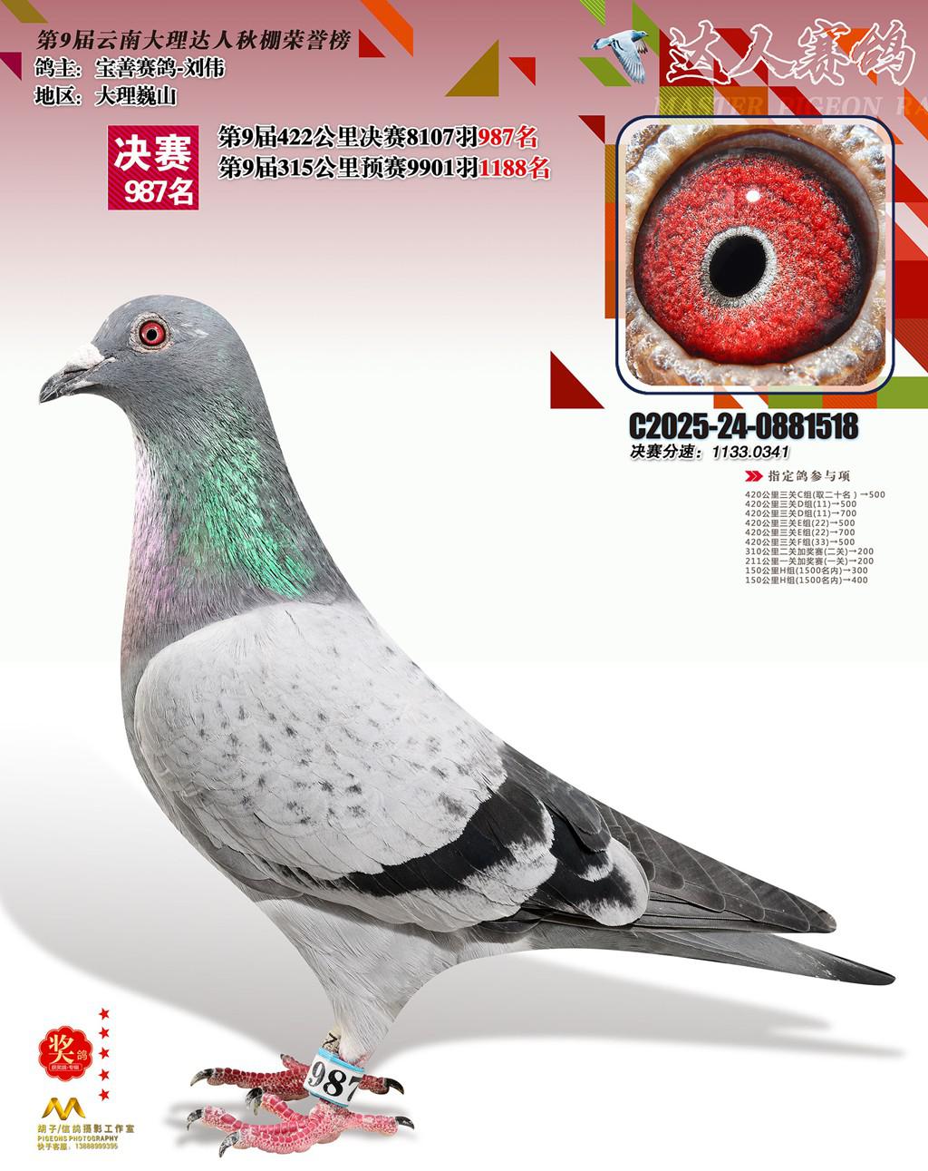 位置:云南大理巍山达人赛鸽中心2025获奖鸽展示\987名
