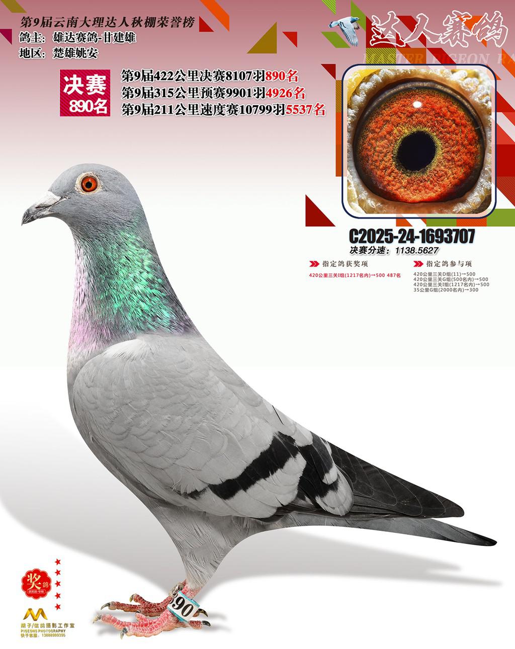 位置:云南大理巍山达人赛鸽中心2025获奖鸽展示\890名