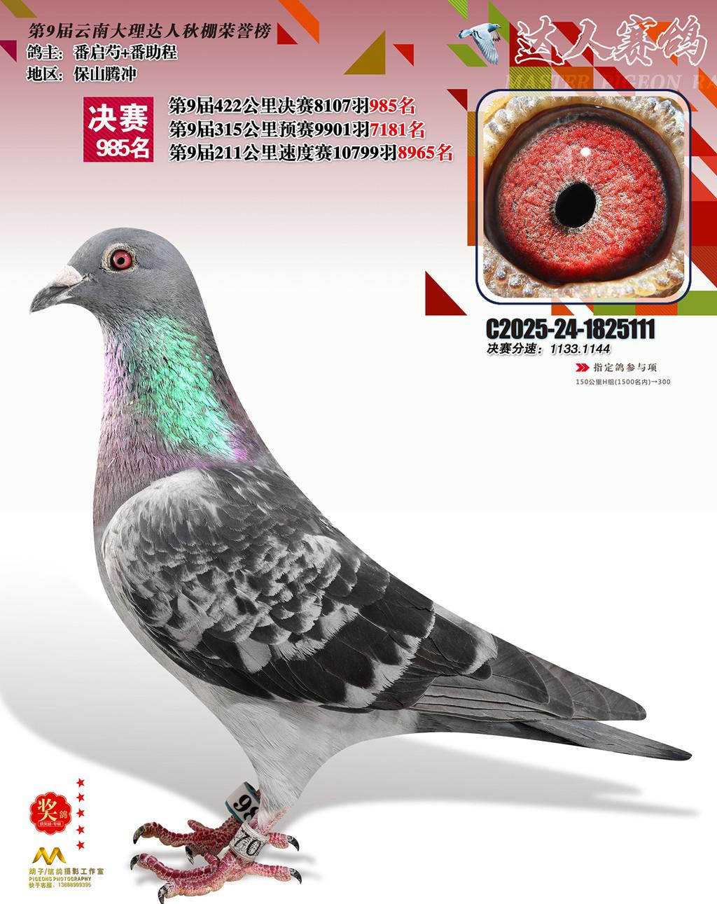 位置:云南大理巍山达人赛鸽中心2025获奖鸽展示\985名