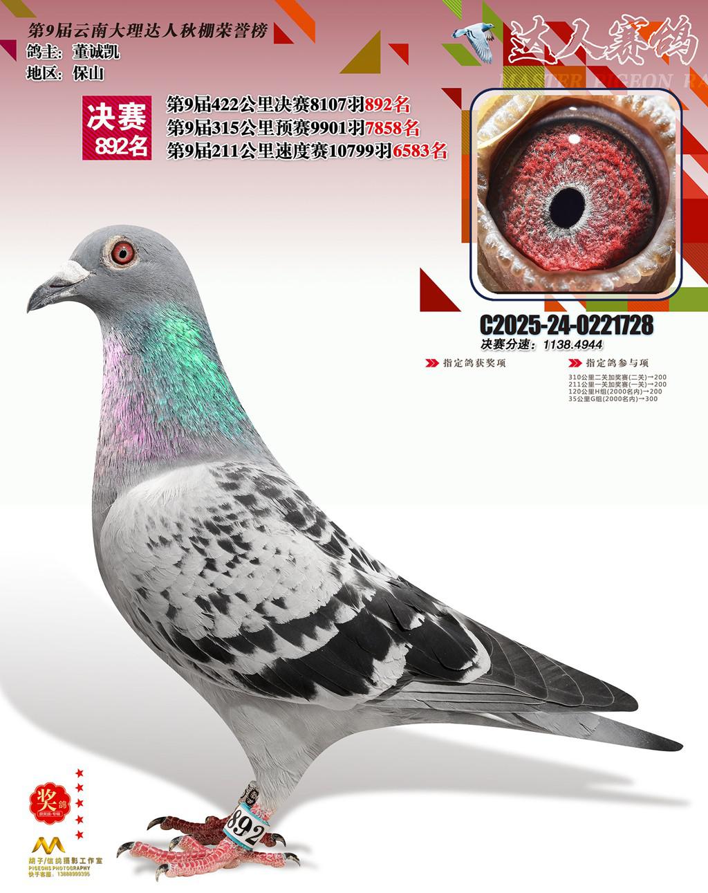 位置:云南大理巍山达人赛鸽中心2025获奖鸽展示\892名