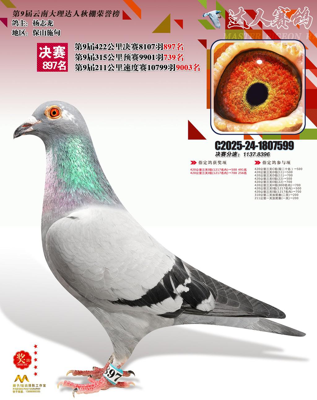 位置:云南大理巍山达人赛鸽中心2025获奖鸽展示\897名