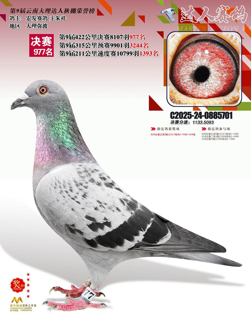 位置:云南大理巍山达人赛鸽中心2025获奖鸽展示\977名