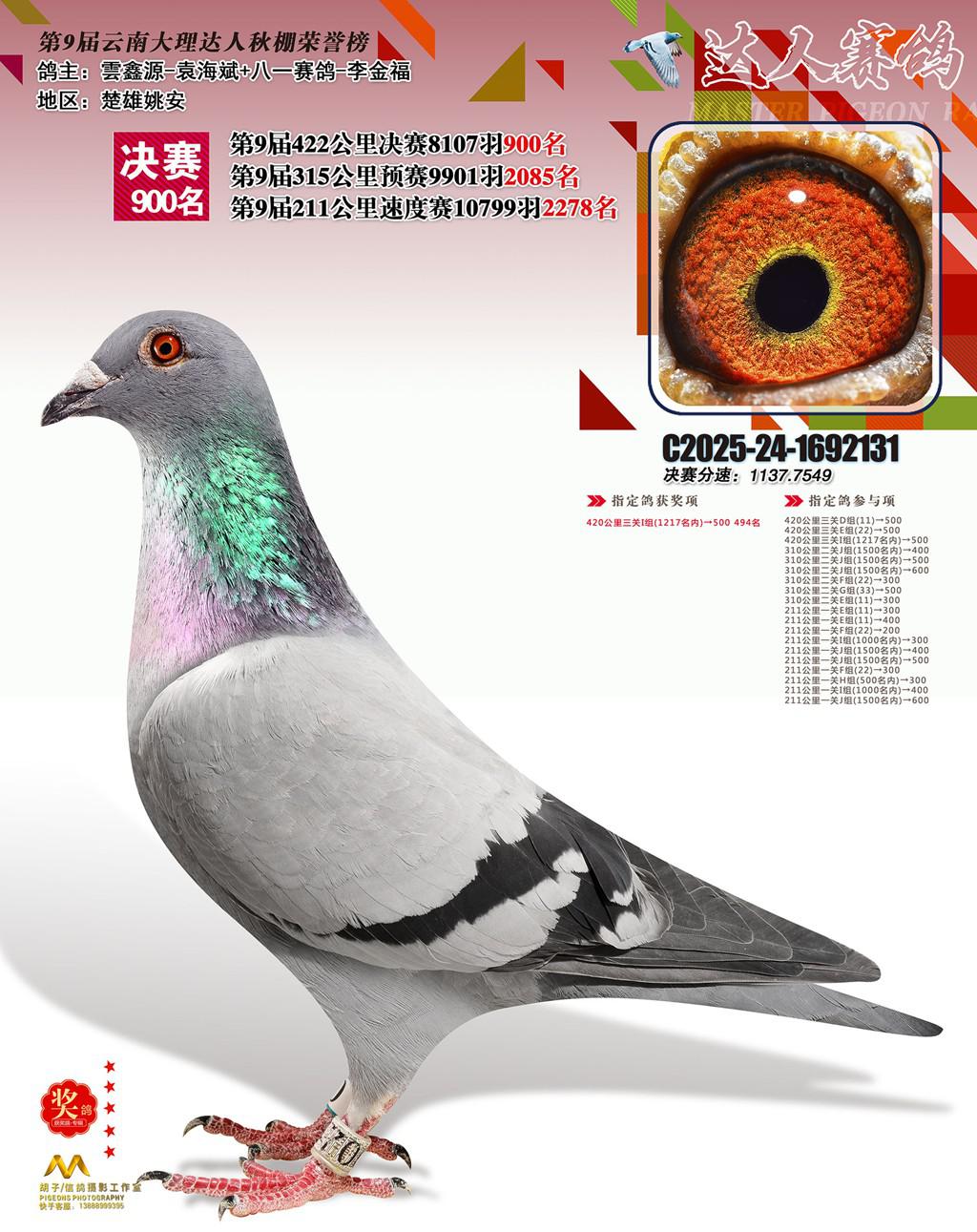 位置:云南大理巍山达人赛鸽中心2025获奖鸽展示\900名