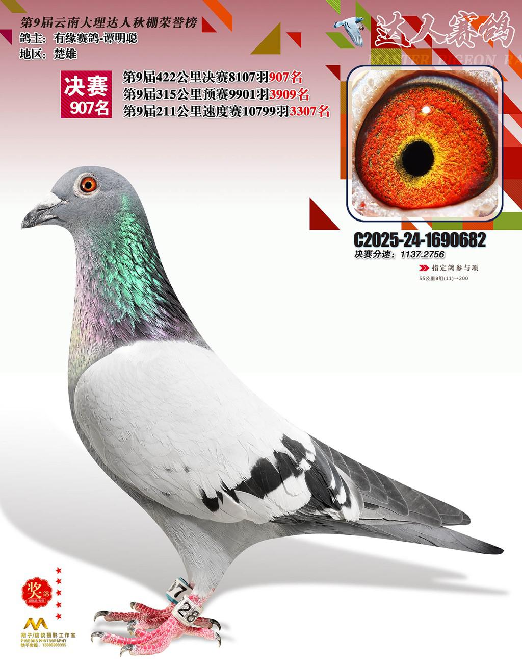 位置:云南大理巍山达人赛鸽中心2025获奖鸽展示\907名
