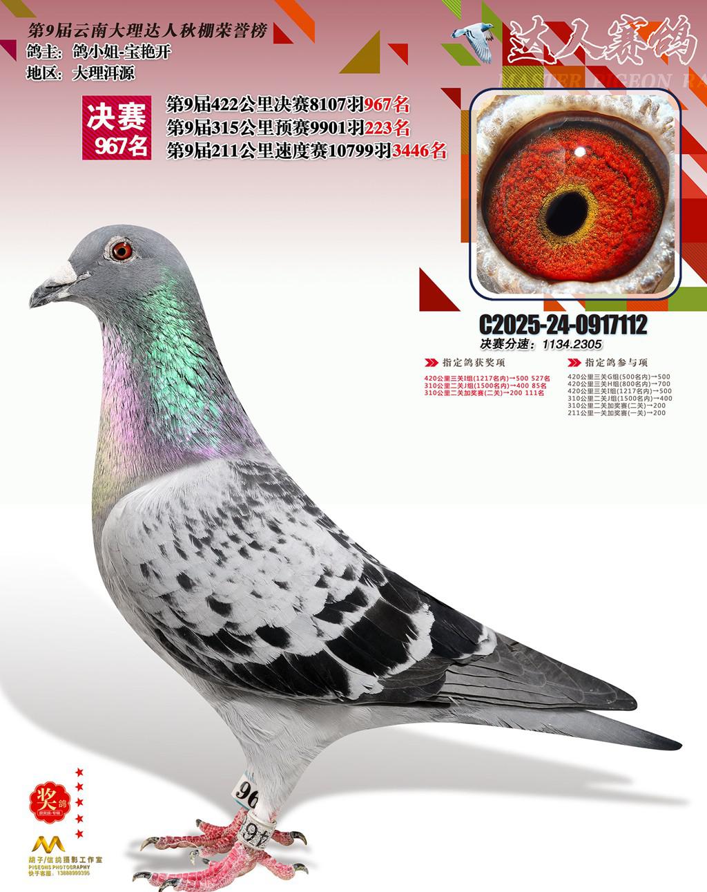 位置:云南大理巍山达人赛鸽中心2025获奖鸽展示\967名