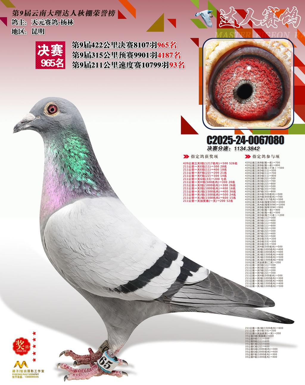 位置:云南大理巍山达人赛鸽中心2025获奖鸽展示\965名