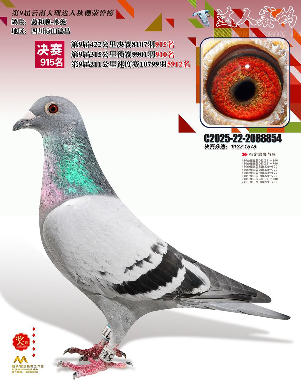 位置:云南大理巍山达人赛鸽中心2025获奖鸽展示\915名