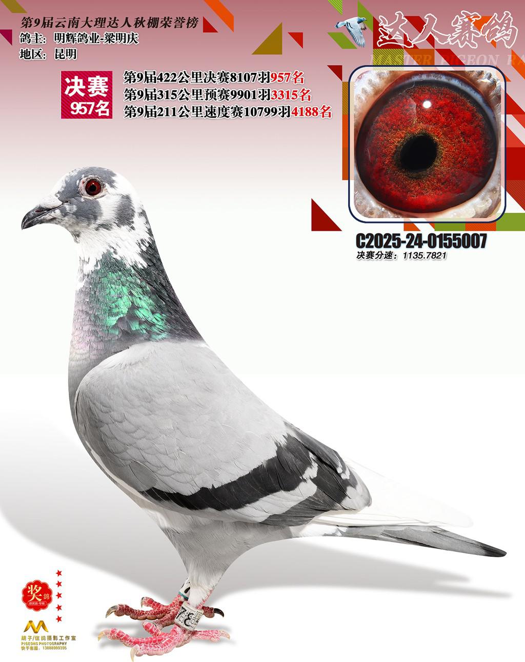 位置:云南大理巍山达人赛鸽中心2025获奖鸽展示\957名