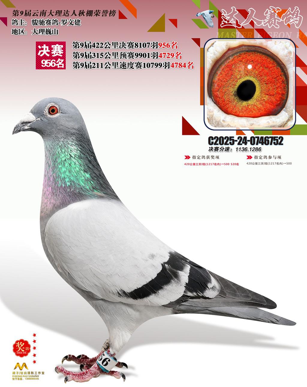 位置:云南大理巍山达人赛鸽中心2025获奖鸽展示\956名