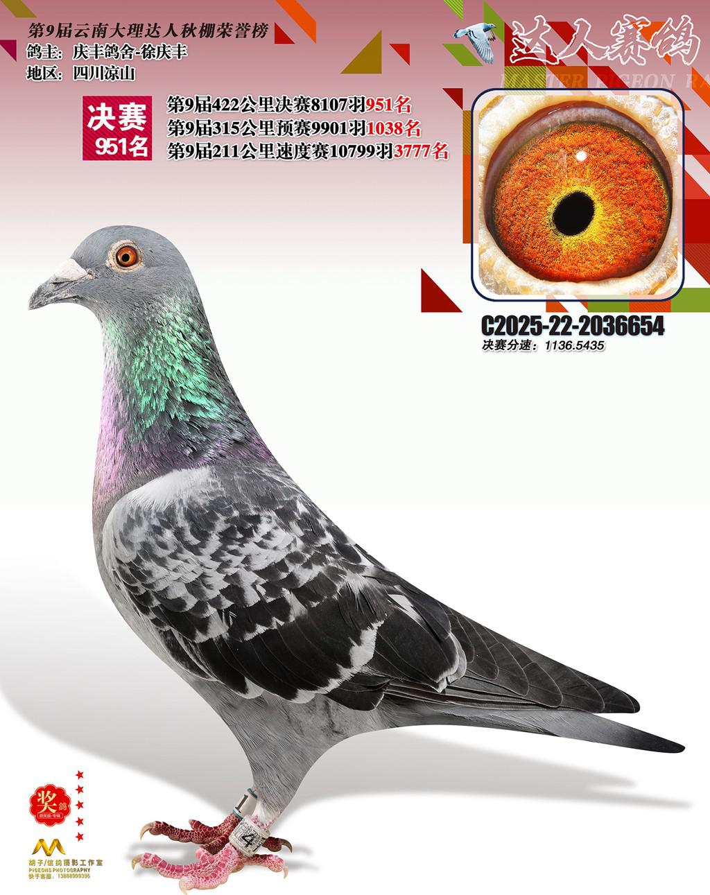 位置:云南大理巍山达人赛鸽中心2025获奖鸽展示\951名