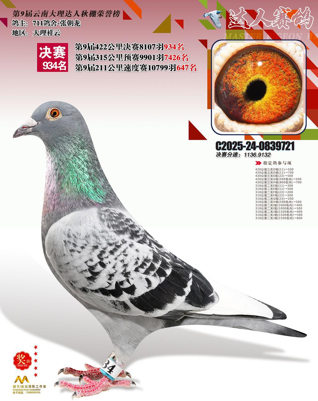 位置:云南大理巍山达人赛鸽中心2025获奖鸽展示\934名