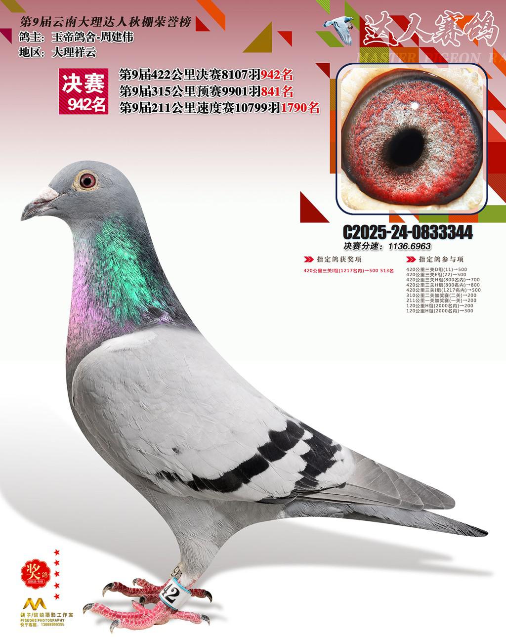 位置:云南大理巍山达人赛鸽中心2025获奖鸽展示\942名