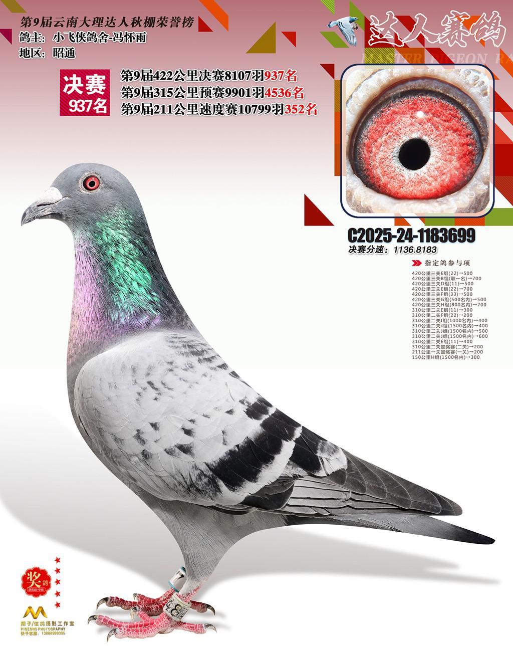 位置:云南大理巍山达人赛鸽中心2025获奖鸽展示\937名