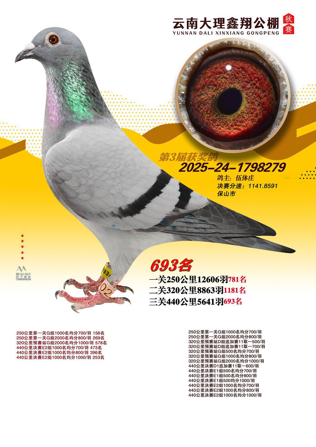 位置:云南大理鑫翔公棚2025获奖鸽展示\693名