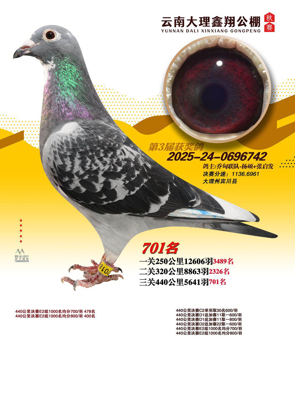 位置:云南大理鑫翔公棚2025获奖鸽展示\701名