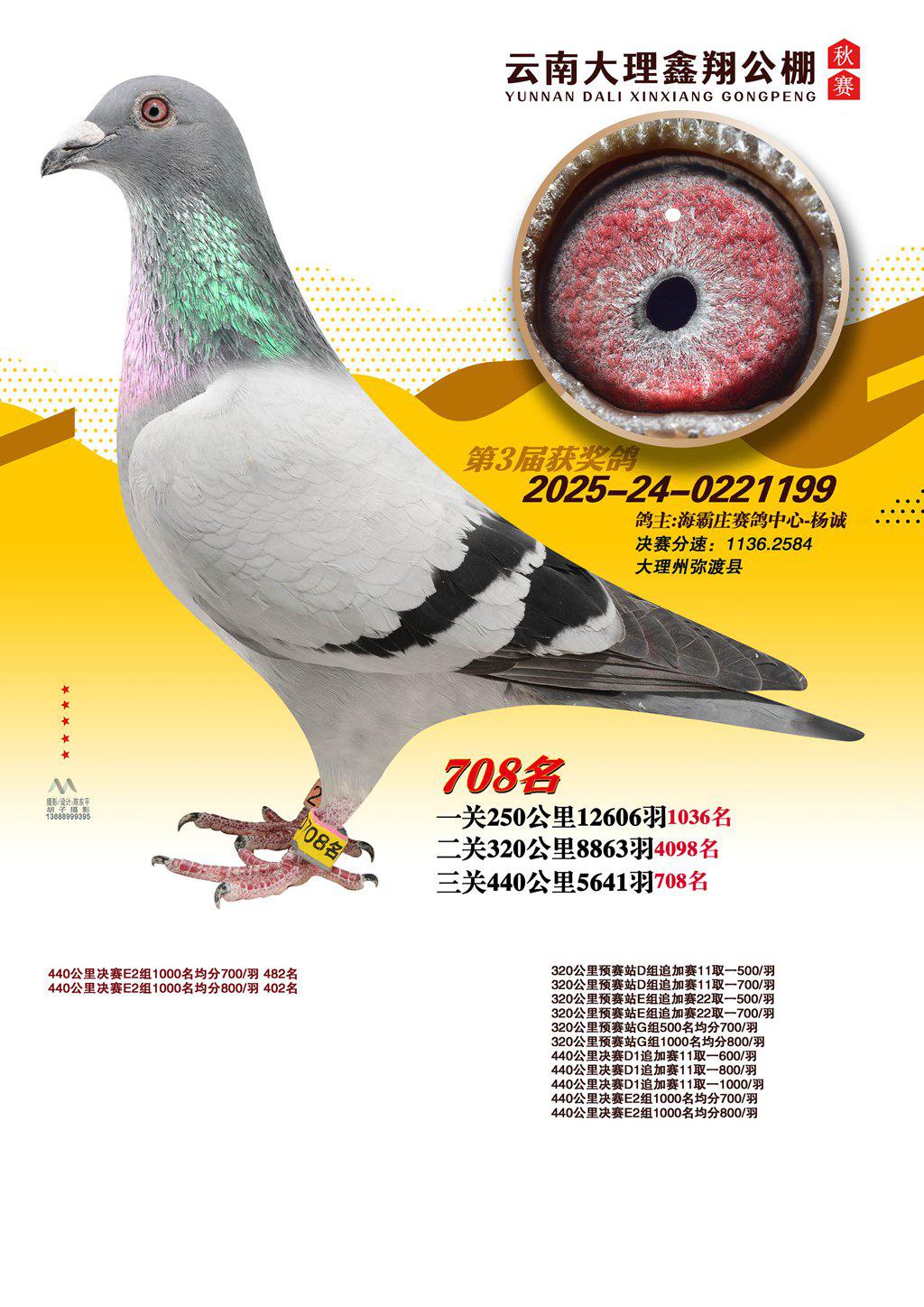 位置:云南大理鑫翔公棚2025获奖鸽展示\708名