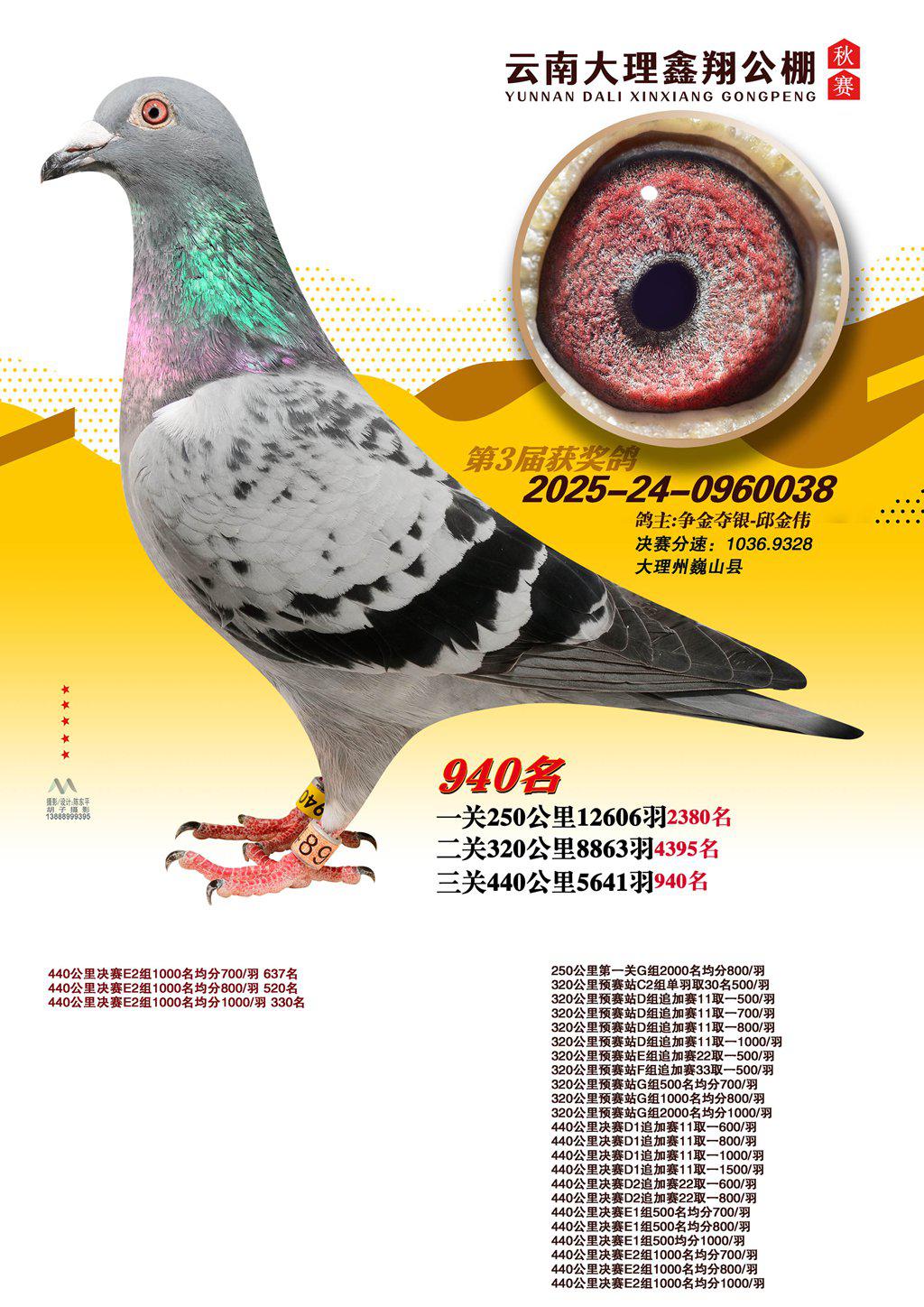 位置:云南大理鑫翔公棚2025获奖鸽展示\940名