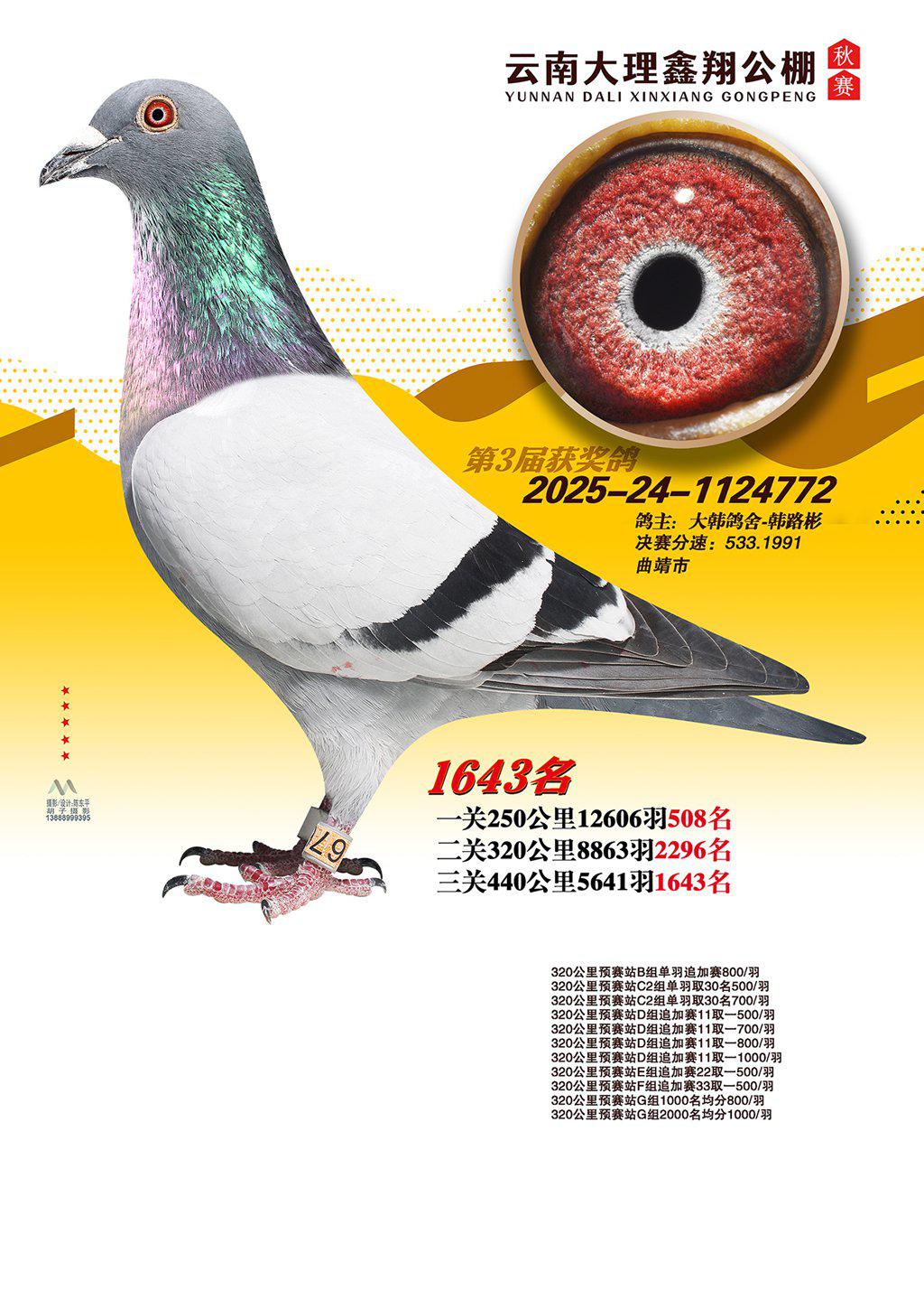 位置:云南大理鑫翔公棚2025获奖鸽展示\1643名