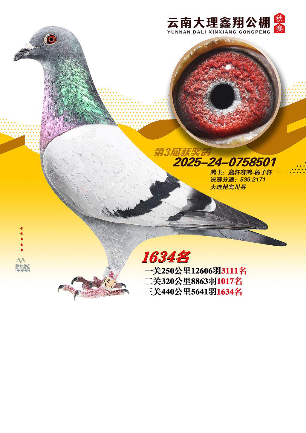 位置:云南大理鑫翔公棚2025获奖鸽展示\1634名