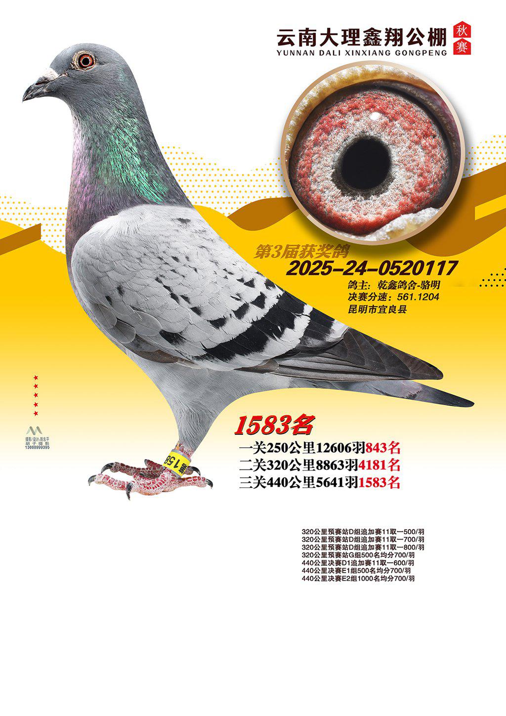 位置:云南大理鑫翔公棚2025获奖鸽展示\1583名