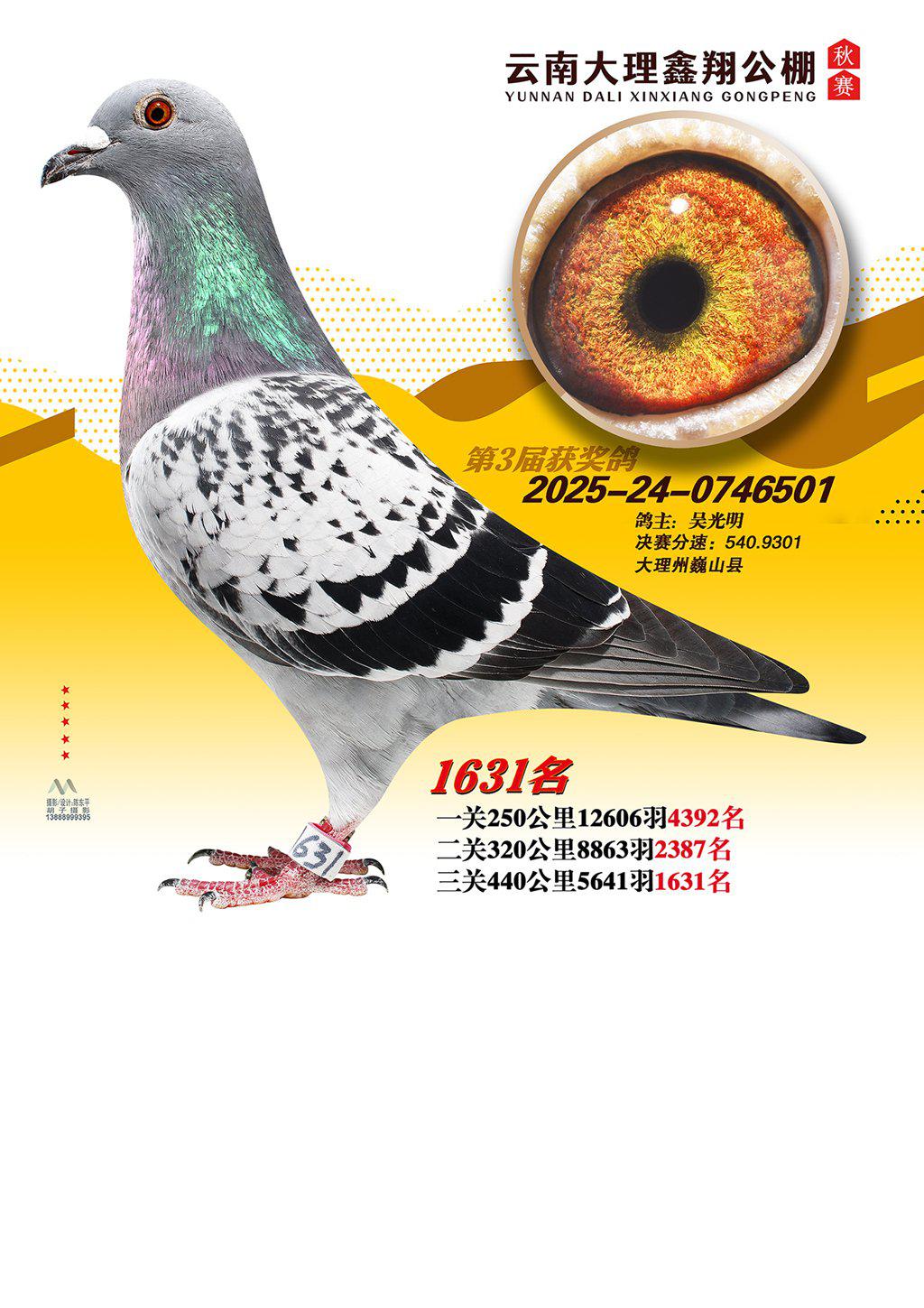 位置:云南大理鑫翔公棚2025获奖鸽展示\1631名