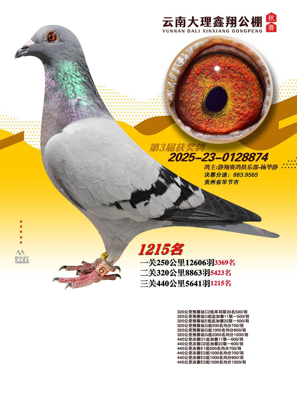 位置:云南大理鑫翔公棚2025获奖鸽展示\1215名