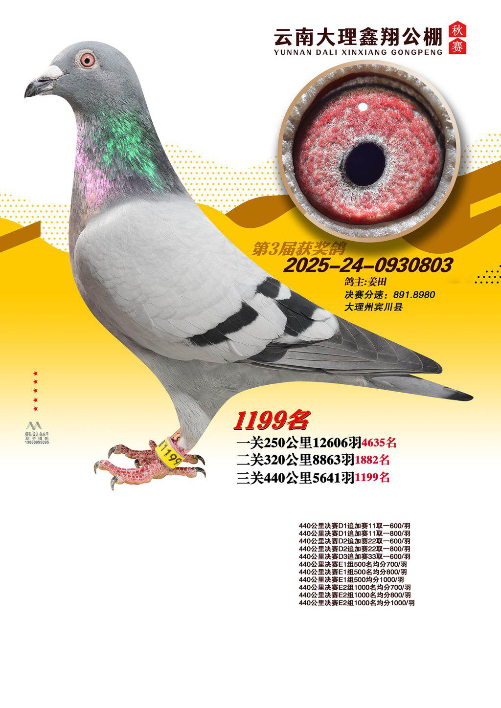 位置:云南大理鑫翔公棚2025获奖鸽展示\1199名