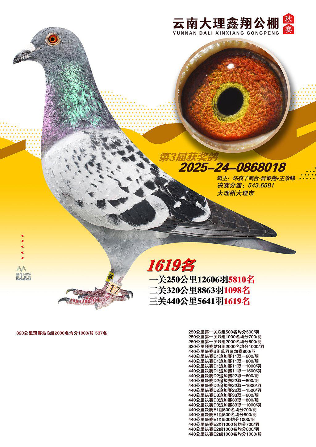 位置:云南大理鑫翔公棚2025获奖鸽展示\1619名
