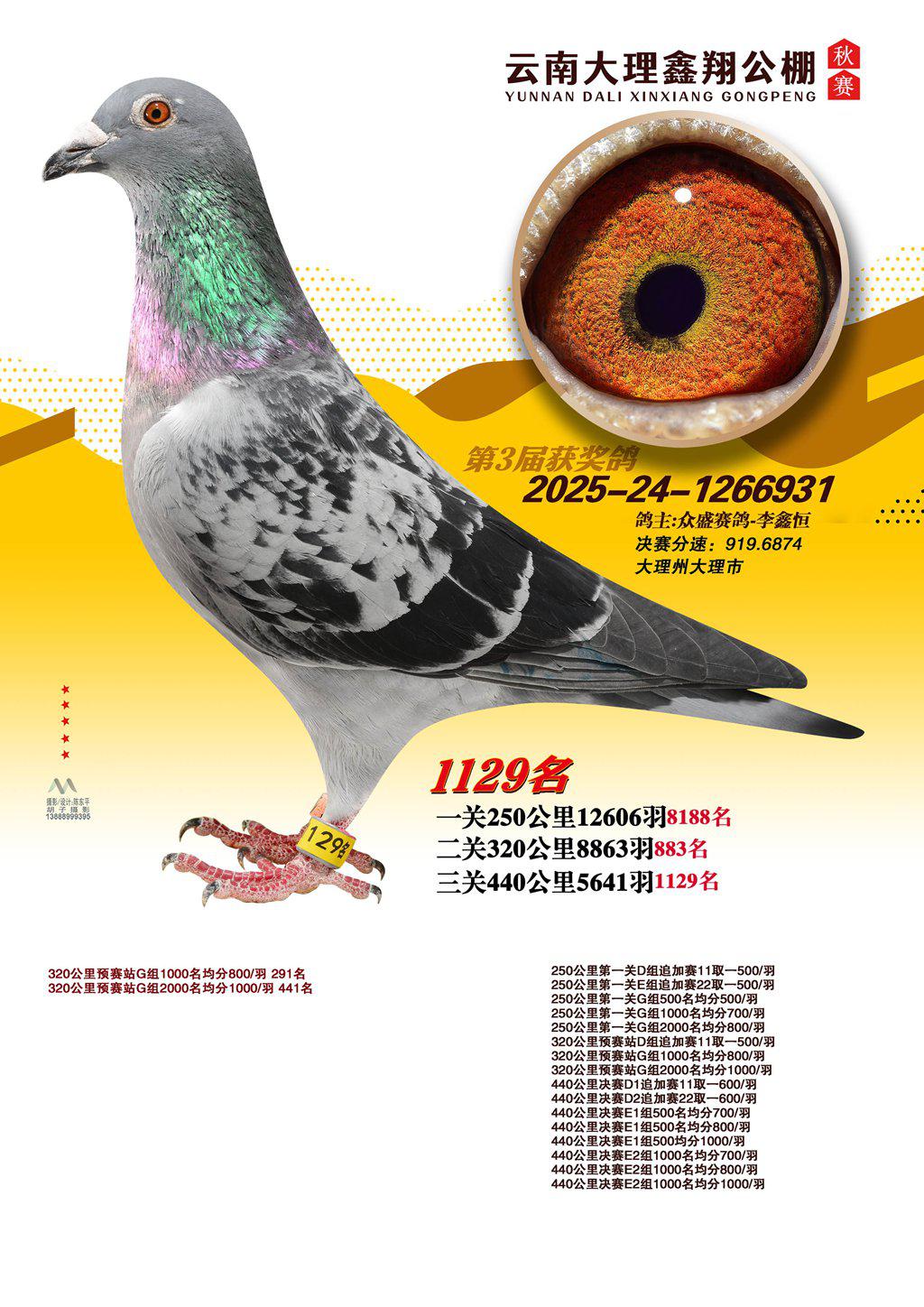 位置:云南大理鑫翔公棚2025获奖鸽展示\1129名