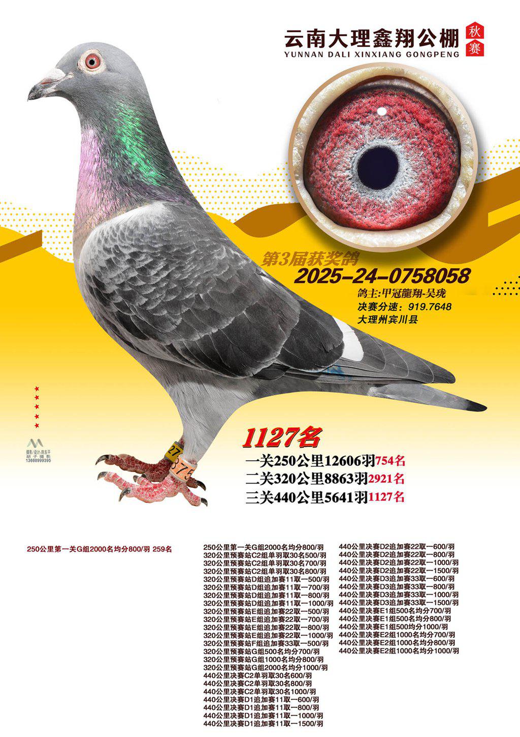 位置:云南大理鑫翔公棚2025获奖鸽展示\1127名