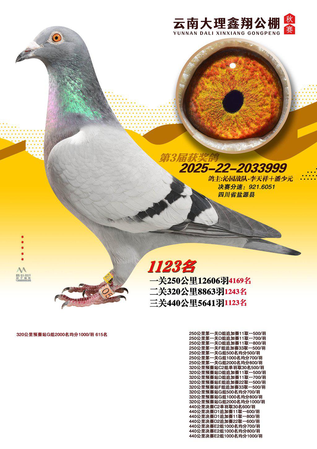 位置:云南大理鑫翔公棚2025获奖鸽展示\1123名