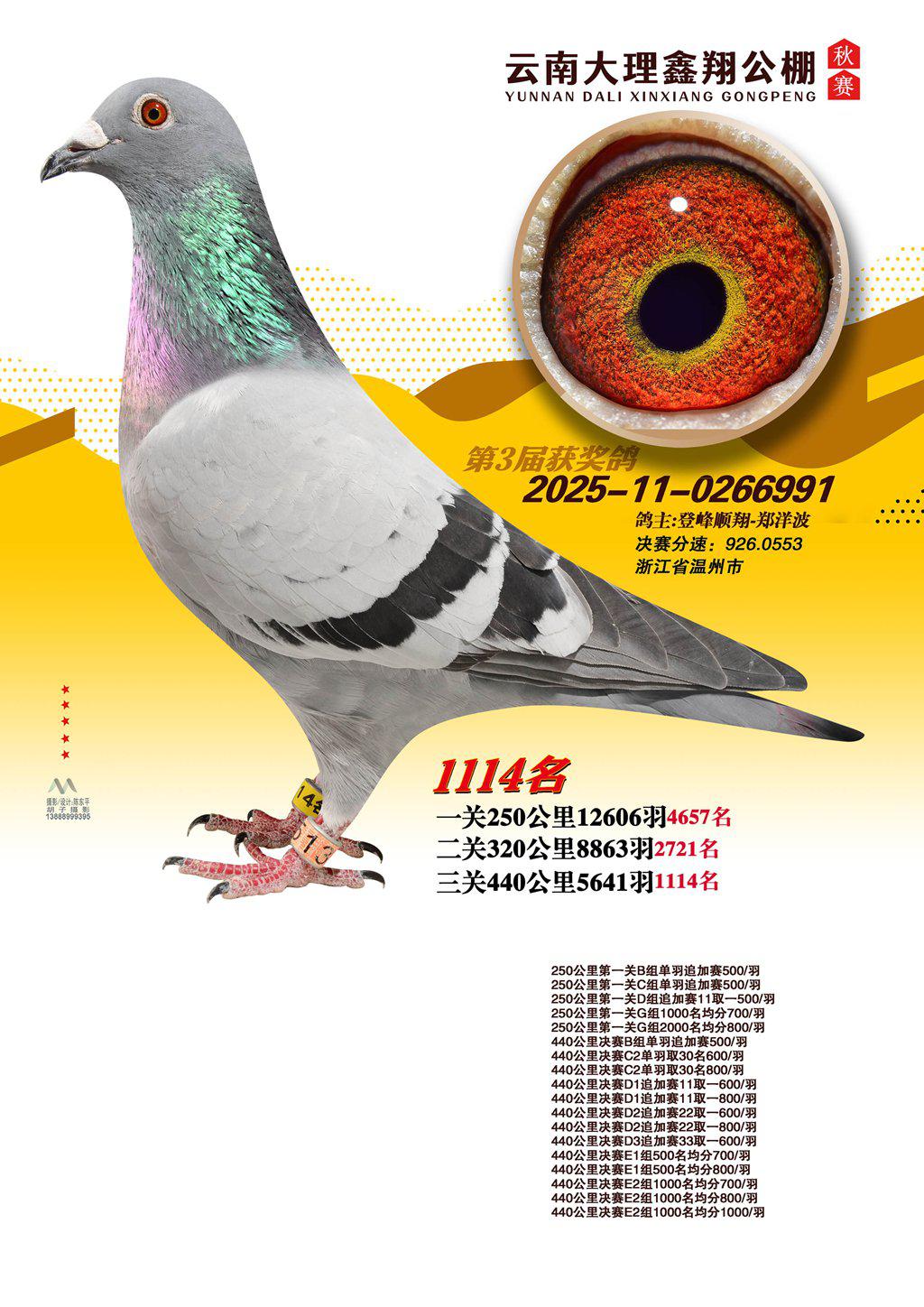 位置:云南大理鑫翔公棚2025获奖鸽展示\1114名