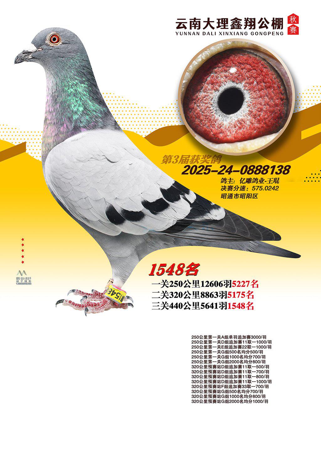 位置:云南大理鑫翔公棚2025获奖鸽展示\1548名