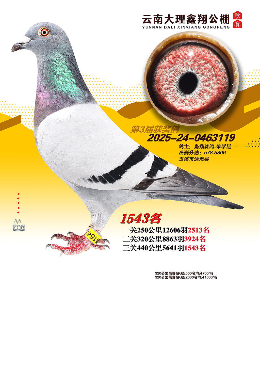 位置:云南大理鑫翔公棚2025获奖鸽展示\1543名