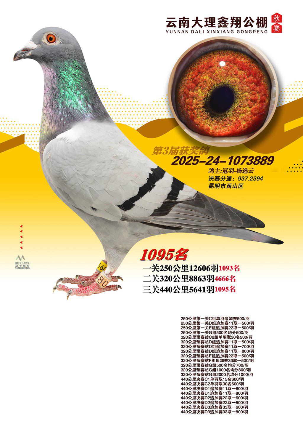 位置:云南大理鑫翔公棚2025获奖鸽展示\1095名