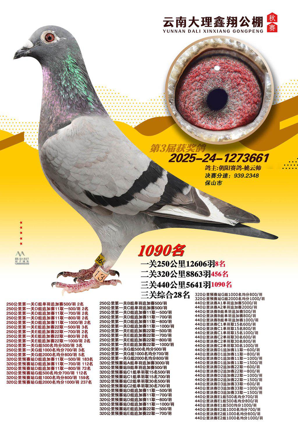 位置:云南大理鑫翔公棚2025获奖鸽展示\1090名