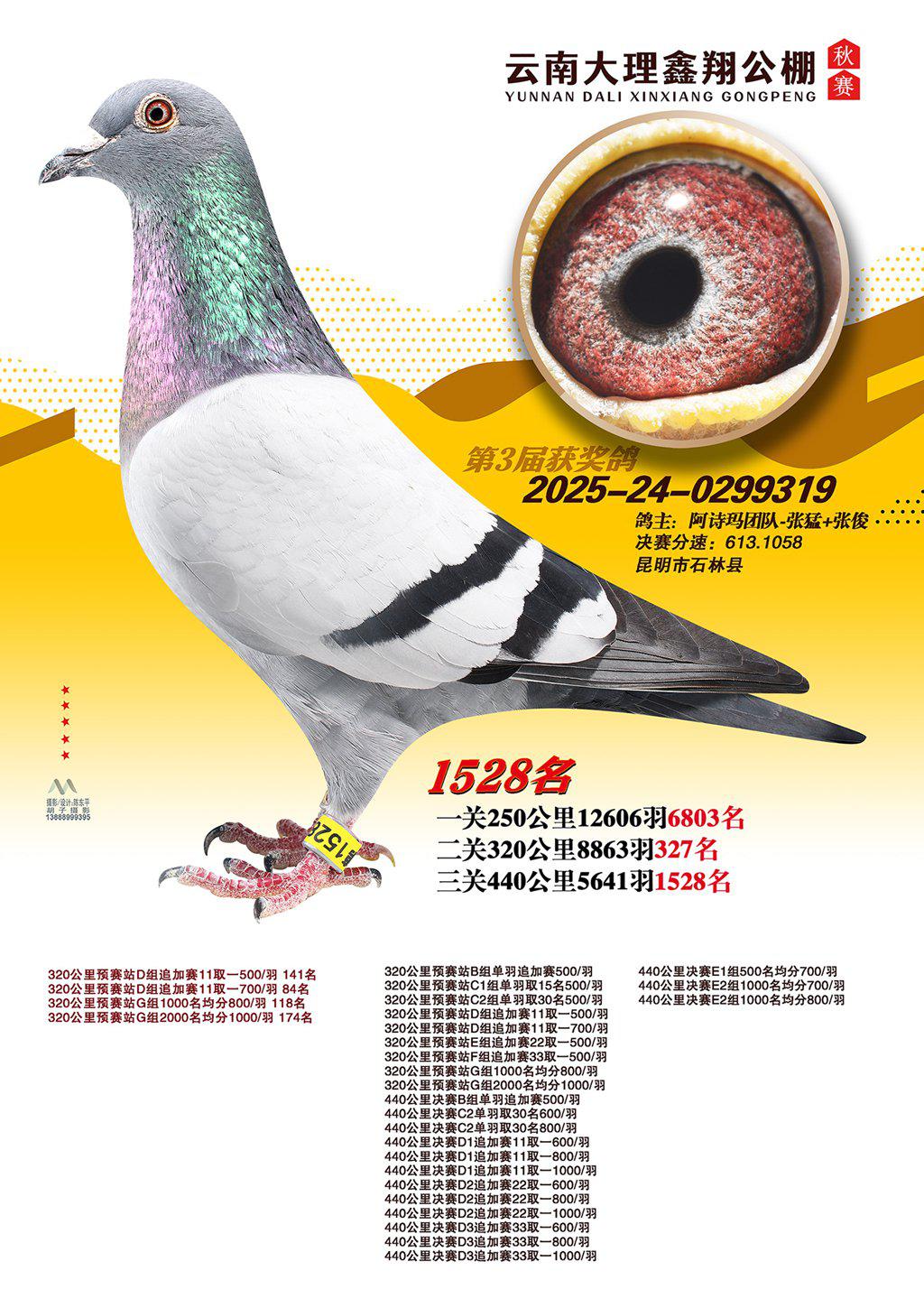 位置:云南大理鑫翔公棚2025获奖鸽展示\1528名