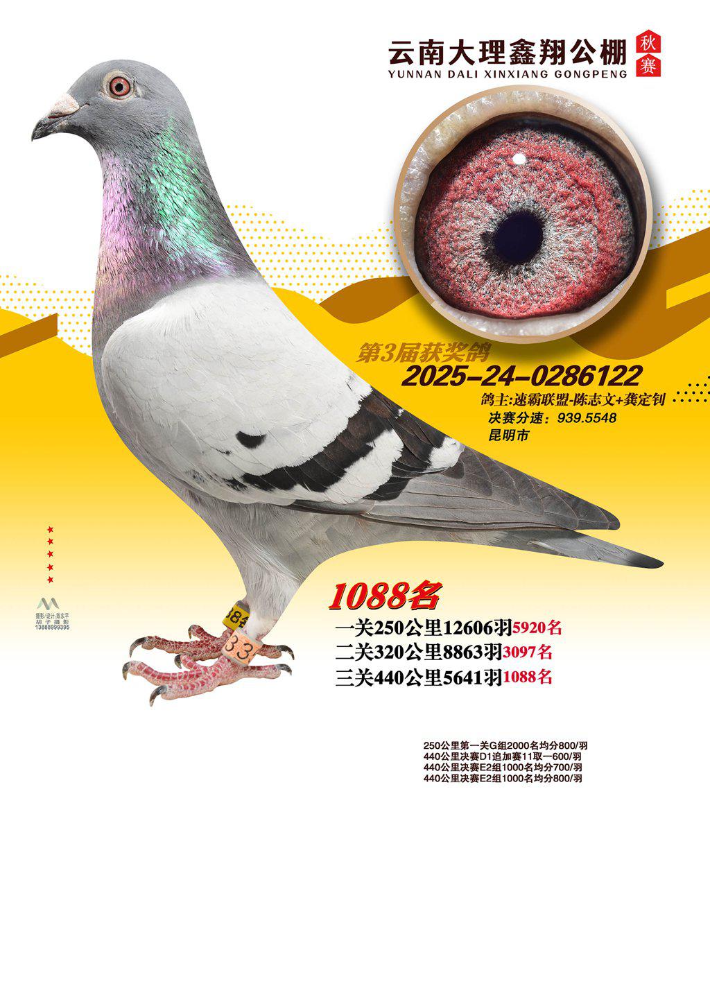 位置:云南大理鑫翔公棚2025获奖鸽展示\1088名