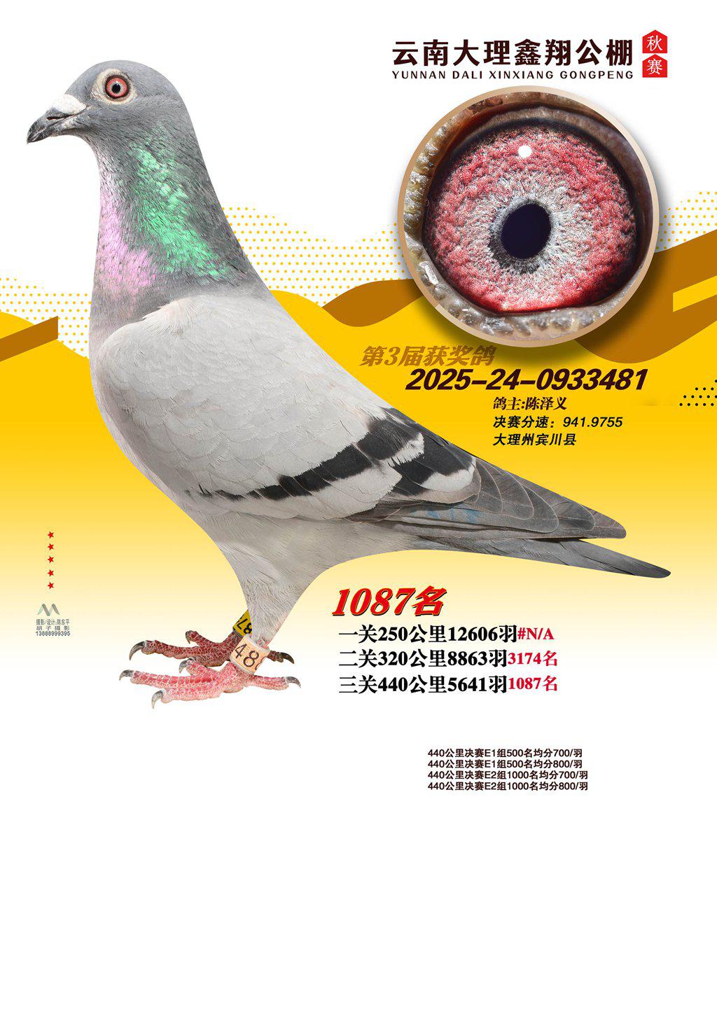 位置:云南大理鑫翔公棚2025获奖鸽展示\1087名
