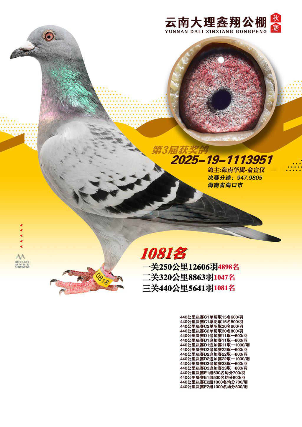 位置:云南大理鑫翔公棚2025获奖鸽展示\1081名