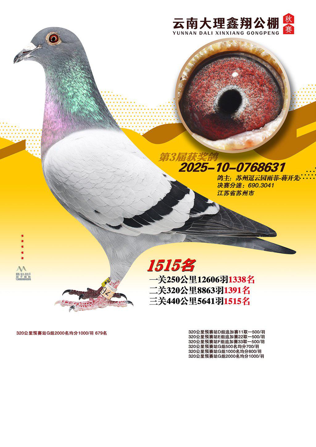 位置:云南大理鑫翔公棚2025获奖鸽展示\1515名