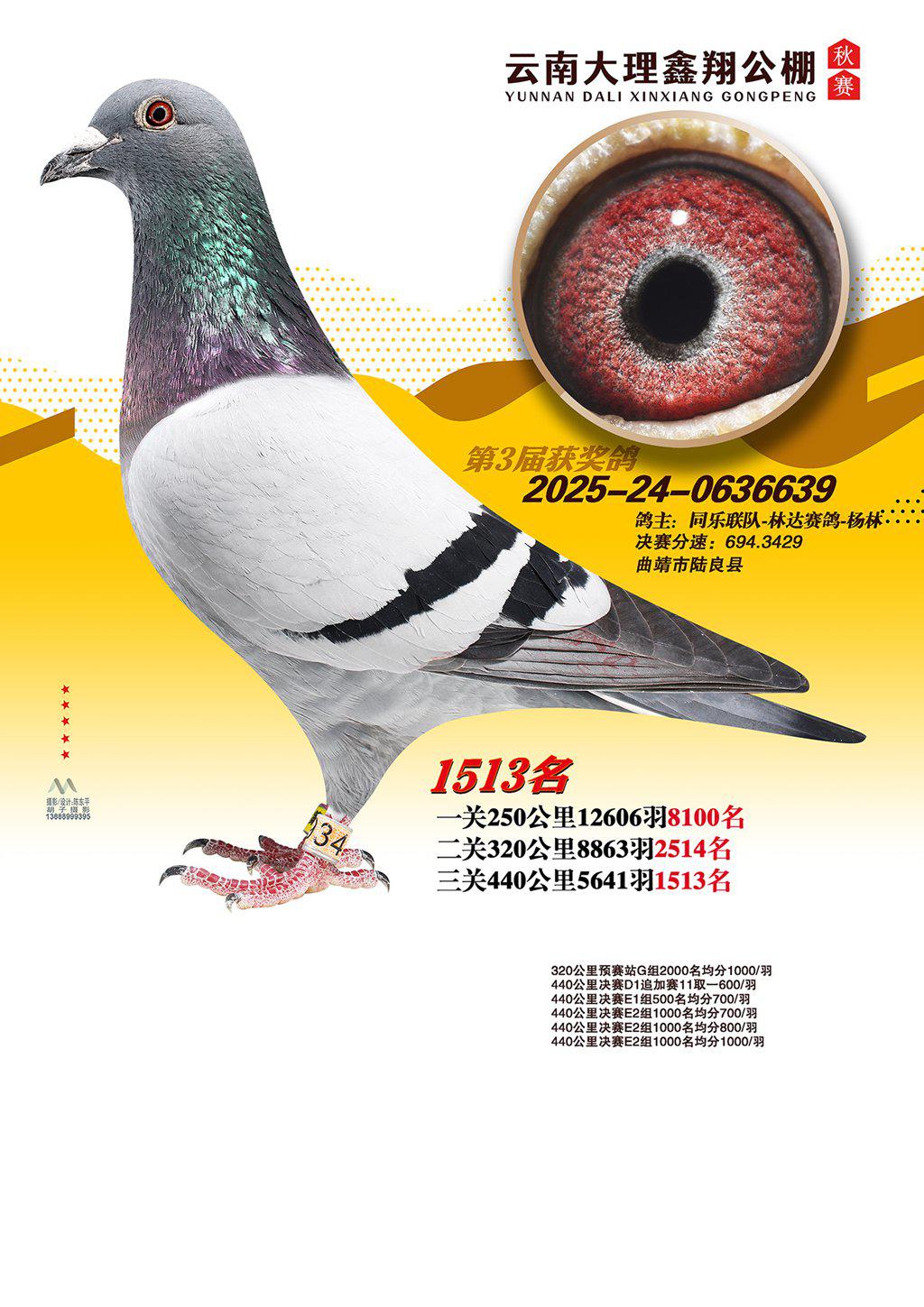 位置:云南大理鑫翔公棚2025获奖鸽展示\1513名