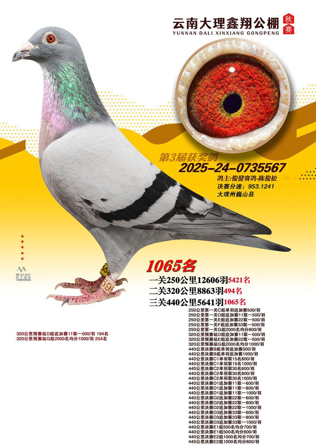 位置:云南大理鑫翔公棚2025获奖鸽展示\1065名