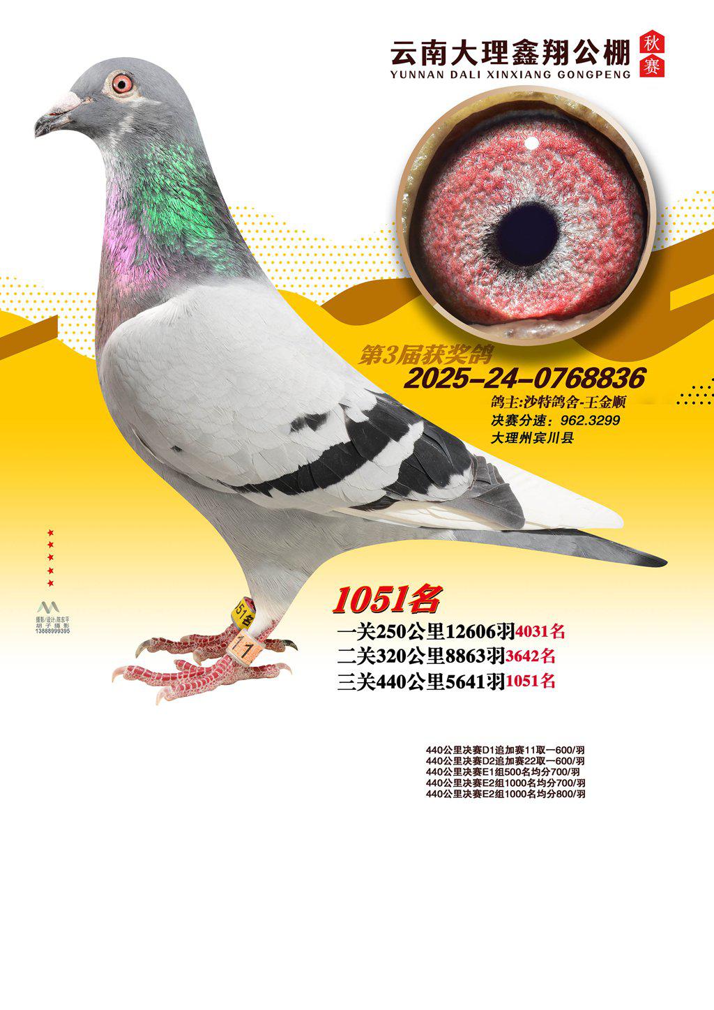 位置:云南大理鑫翔公棚2025获奖鸽展示\1051名