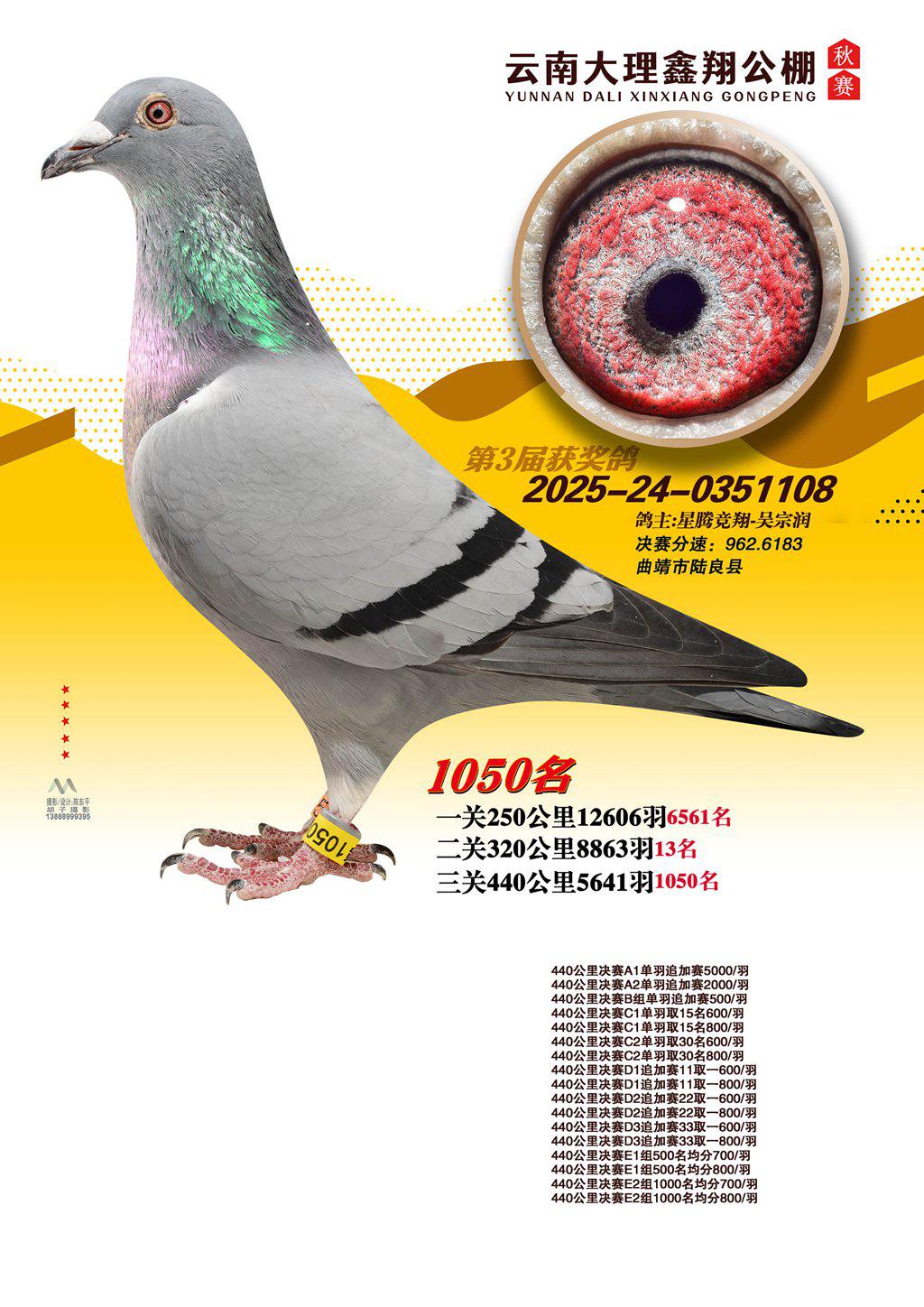 位置:云南大理鑫翔公棚2025获奖鸽展示\1050名