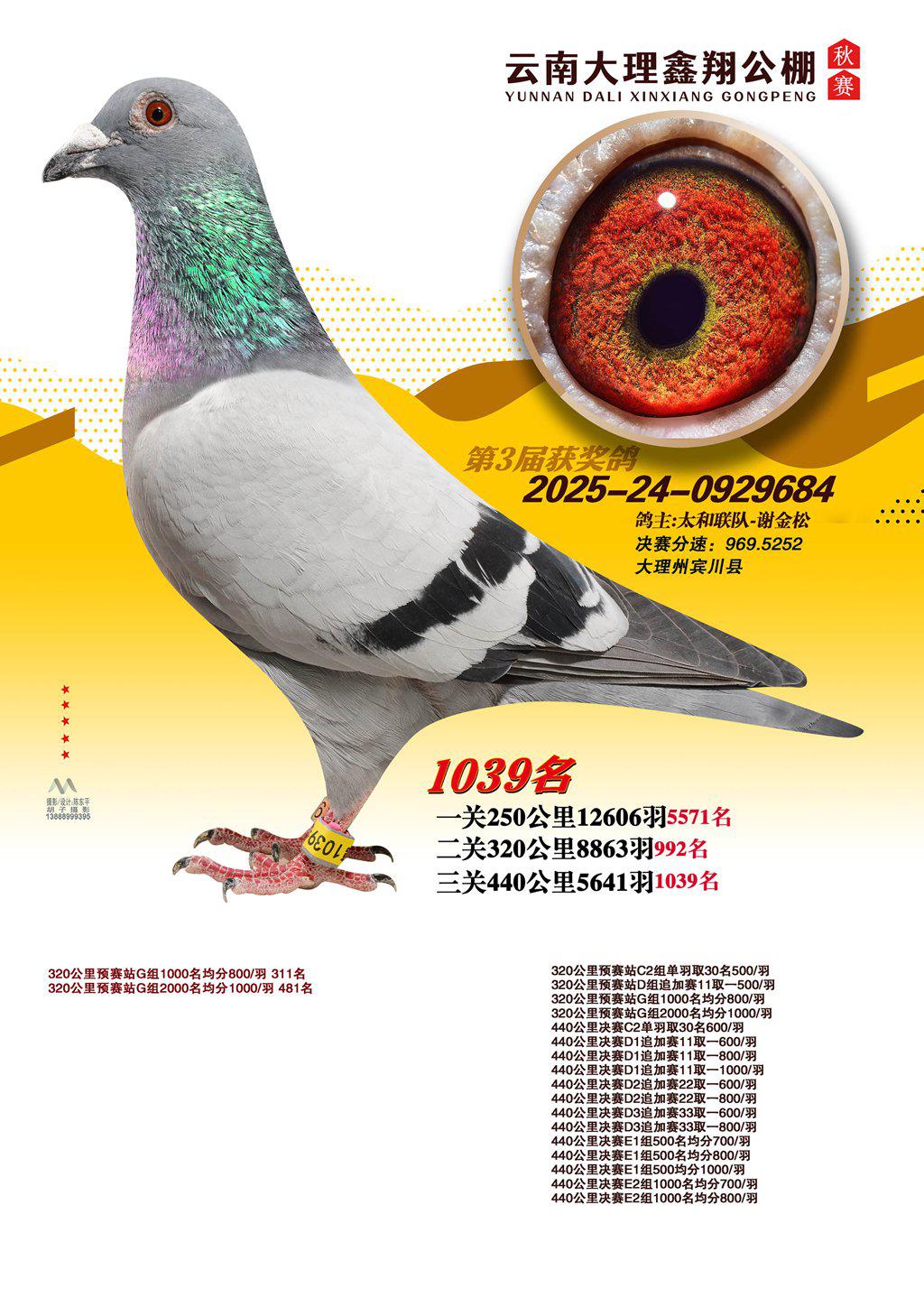 位置:云南大理鑫翔公棚2025获奖鸽展示\1039名