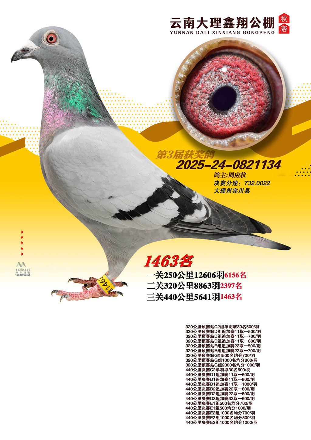 位置:云南大理鑫翔公棚2025获奖鸽展示\1463名