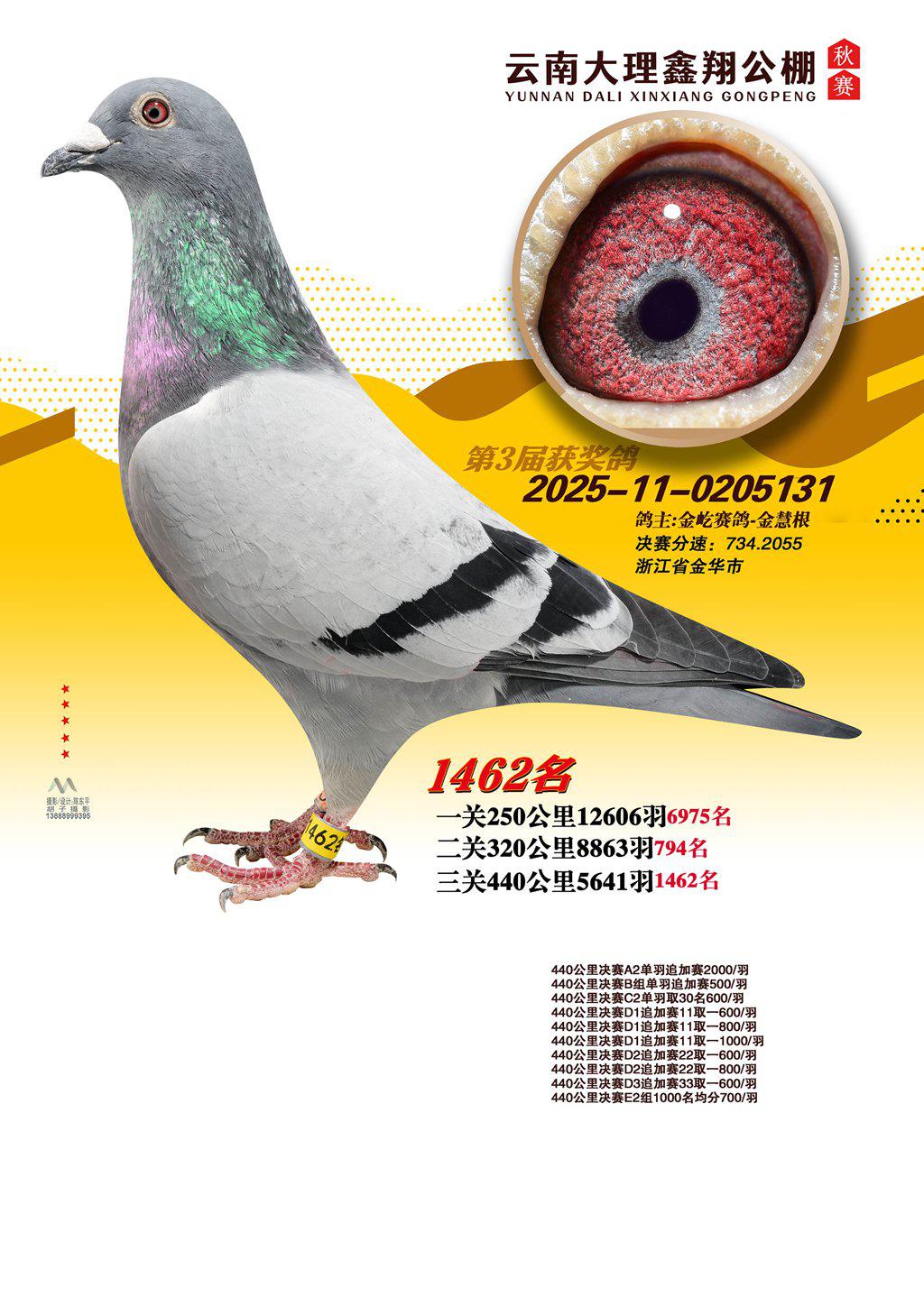 位置:云南大理鑫翔公棚2025获奖鸽展示\1462名