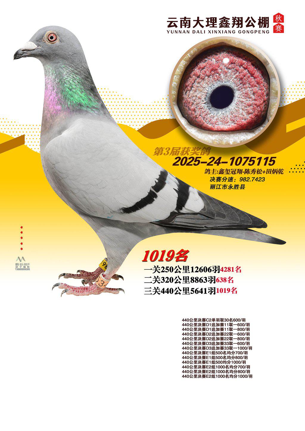 位置:云南大理鑫翔公棚2025获奖鸽展示\1019名
